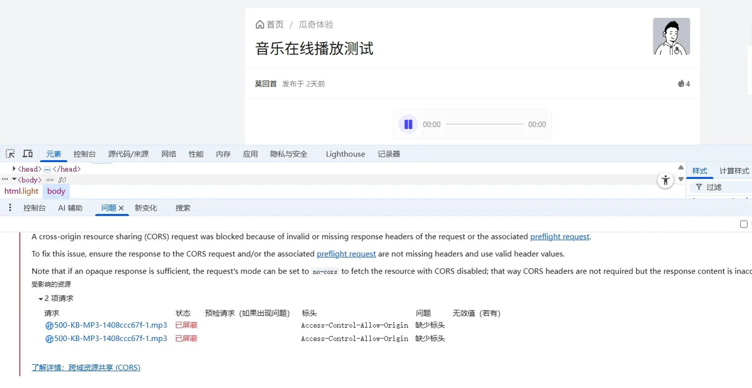 音频文件的服务器没有返回 Access-Control-Allow-Origin